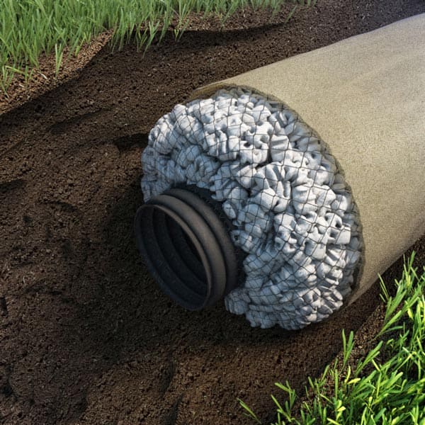 2. Геотекстиль — трубы уже обёрнуты геотекстилем и готовы к укладке, геотекстиль предохраняет систему от заливания.